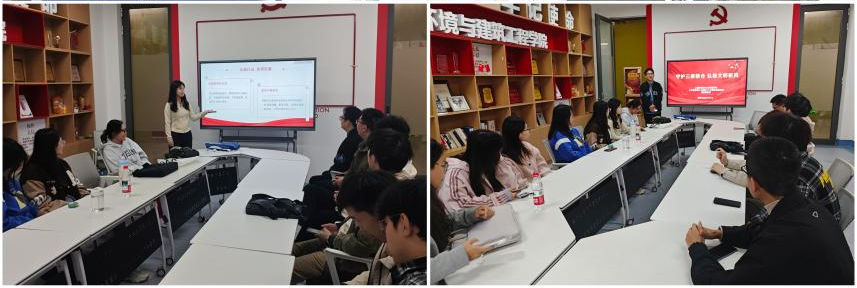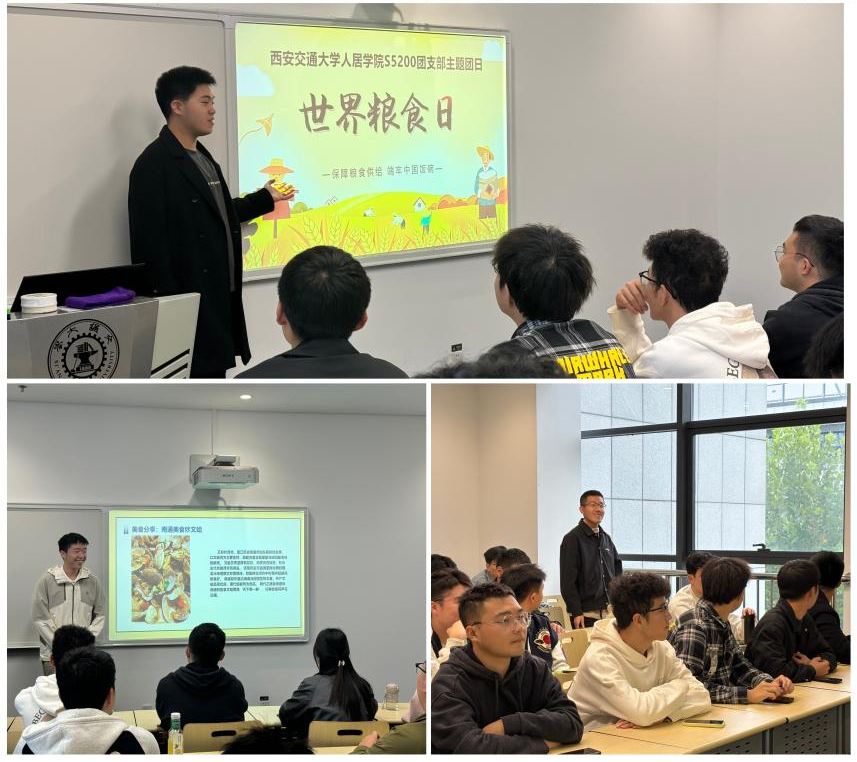 宣传周活动以一场主题团课拉开序幕,引导同学们从战略高度认识粮食安全的重要意义。课堂内容聚焦于我国在粮食储备、科技创新和节约制度建设方面的实践经验,同时结合世界粮食日主题,交流多样饮食文化在促进粮食安全和可持续发展中的积极作用。在交流环节,同学们围绕“家乡的味道”展开分享,以陕西羊肉泡馍、南通炒文蛤、延安沾沾等地域美食为例,从熟悉的餐桌出发,思考粮食与文化、节约与发展的关系。现场讨论氛围热烈,思想碰撞中既有理论的深度,也有生活的温度。