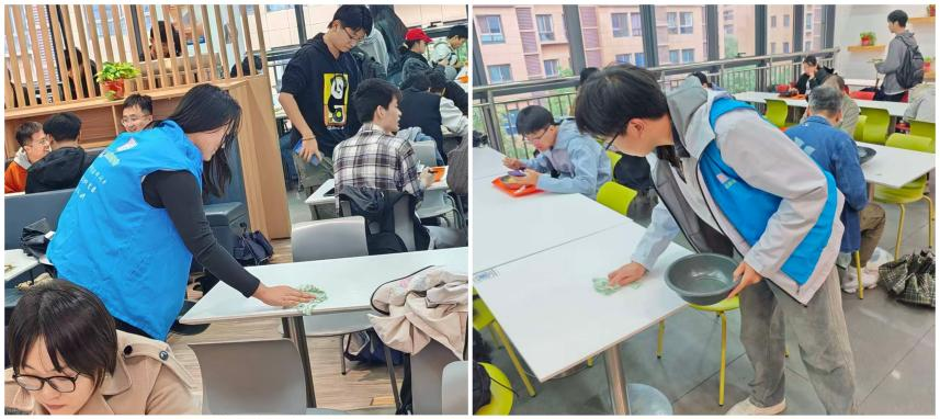 在理论学习基础上,文明倡导成为本次宣传周的重要一环。10月11日,人文学院与人居学院志愿者走进涵英楼餐厅,开展“文明餐桌”志愿服务。志愿者们协助后勤人员清理餐桌、整理餐具,引导师生合理取餐、杜绝浪费,呼吁同学们“按需取餐,不剩不弃”。午餐高峰时段,志愿者们的忙碌身影成为餐厅一道温暖的风景。