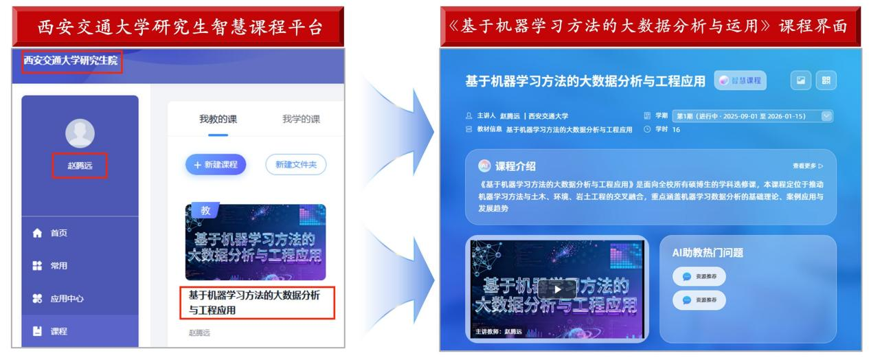 在课程思政高质量建设的基础上,该课程同步入选学校首批AI课程建设项目并已完成建设上线。课程团队围绕在线精品与混合式教学需求,系统完善MOOC教学体系与核心资源,并完成系列高质量教学视频建设。课程已在西安交通大学研究生智慧课程平台正式上线,进一步提升资源可及性与学习便利度。同时,完成了集课程教学规划工具、教学实施工具、教学评价工具于一体的智能教学体系,显著提升了教学的互动性与学习成效。