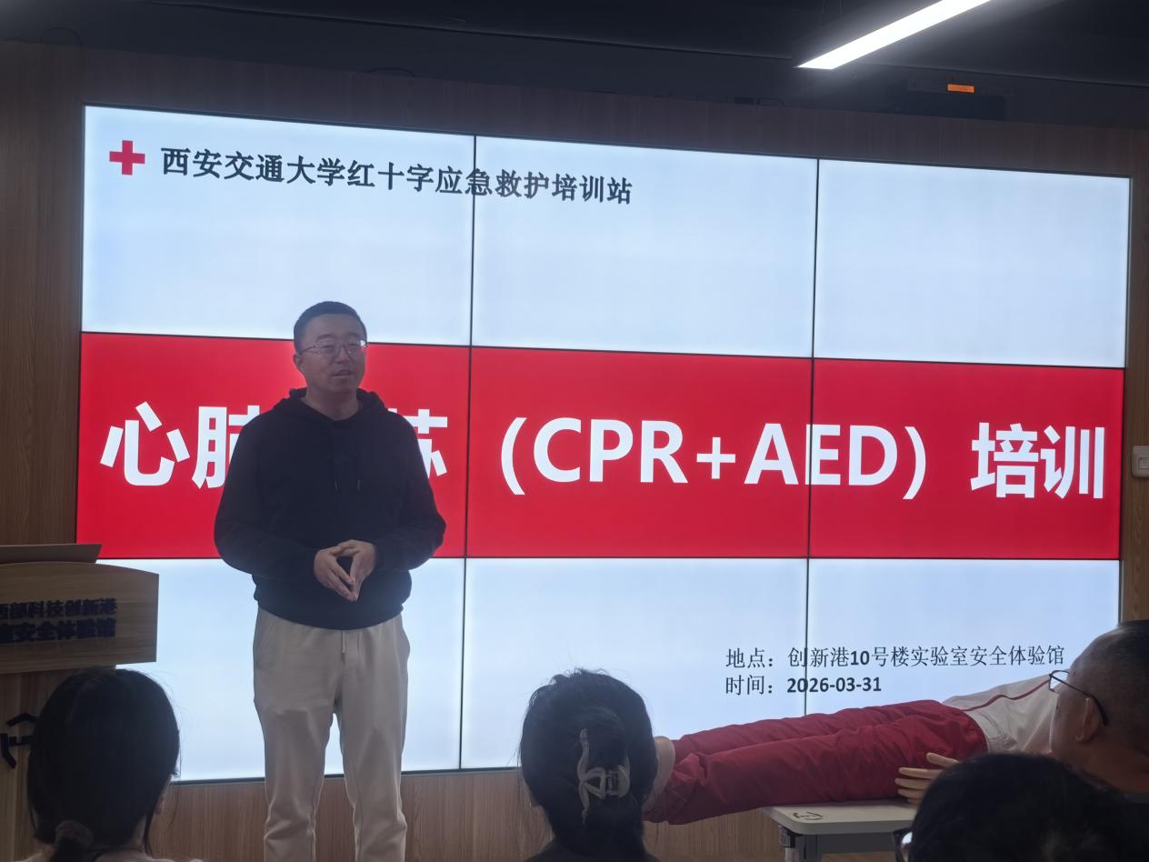 3月31日下午,人居学院联合化工学院、前沿院、校医院、西安交通大学应急救护培训站在创新港实验室安全体验馆开展心肺复苏急救技能培训。本次培训旨在提升师生的应急救护能力,切实保障师生生命健康安全。来自三个学院的40余位教职工参加了本次培训。
