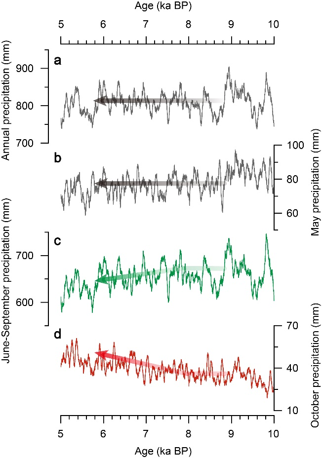 本研究不仅首次为东亚季风边缘区中全新世降水季节性转变提供了强有力的地质证据和机理框架,而且深化了对轨道至百年尺度上气候变率及驱动机制的理解。研究成果对于预测未来全球变暖背景下,季风临界带可能面临的降水分配格局变化具有重要的科学参考价值。