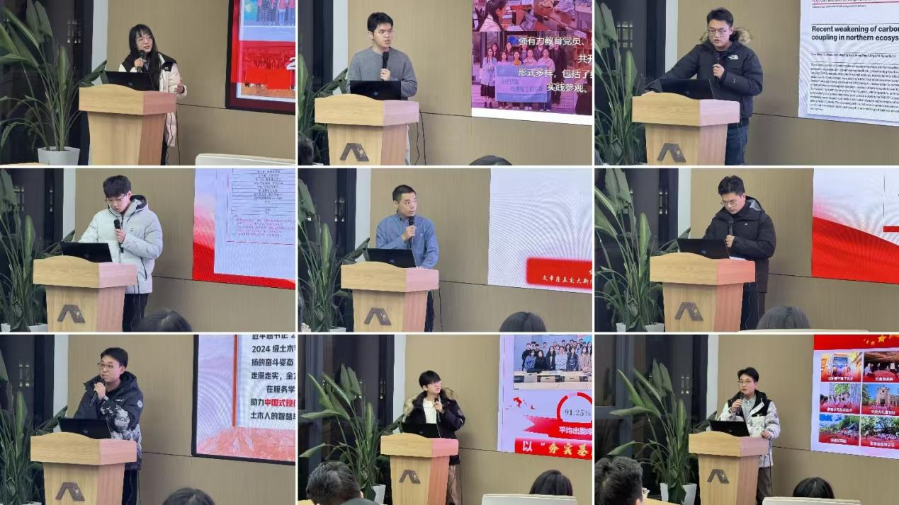 在党支部书记述职环节,各支部书记依次登台作2025年度工作汇报。其中,研三党支部书记聚焦支部建设经验传承,结合自身工作实践,从理论学习常态化机制构建、科研与党建融合路径探索、党员先锋模范作用发挥等方面,分享了成熟有效的工作方法,为研一、研二及本科生党支部提供了可借鉴的实践经验。其他党支部书记则围绕年度党建工作履职情况,全面总结了支部在组织建设、主题党日活动开展、党员教育管理、服务师生等方面的成绩,深入剖析了工作中存在的短板,并明确了2026年度的整改措施和工作规划。