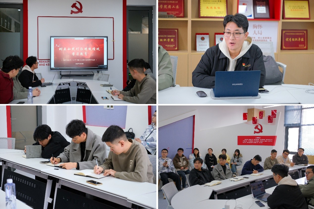 最后,研究生辅导员薛同宣对会议进行总结。他强调,全体党员要以此次学习教育为契机,将树立和践行正确政绩观贯穿于支部建设和个人成长的全过程,强化实践导向,推动党建工作与科研学习、职业发展深度融合。同时,他勉励全体党员立足毕业关键节点,兼顾好毕业与就业两件大事,脚踏实地、真抓实干,顺利毕业、满意就业,带着党员的初心使命和责任担当,奔赴人生新征程、书写青春新篇章。
