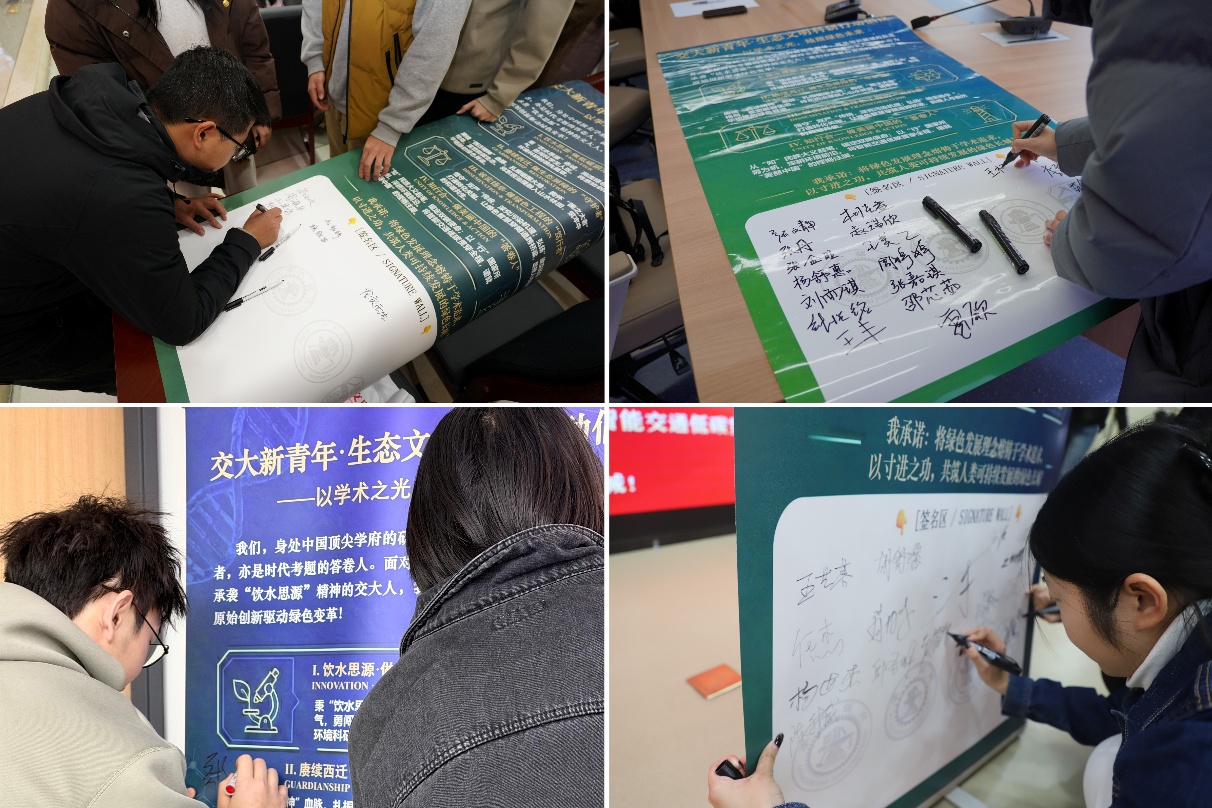 随后,四院学子联合成立交大新青年生态文明行动联盟,共同签署《交大新青年・生态文明行动倡议》,为后续拓宽合作领域、共筑绿色发展新格局奠定了坚实基础。
