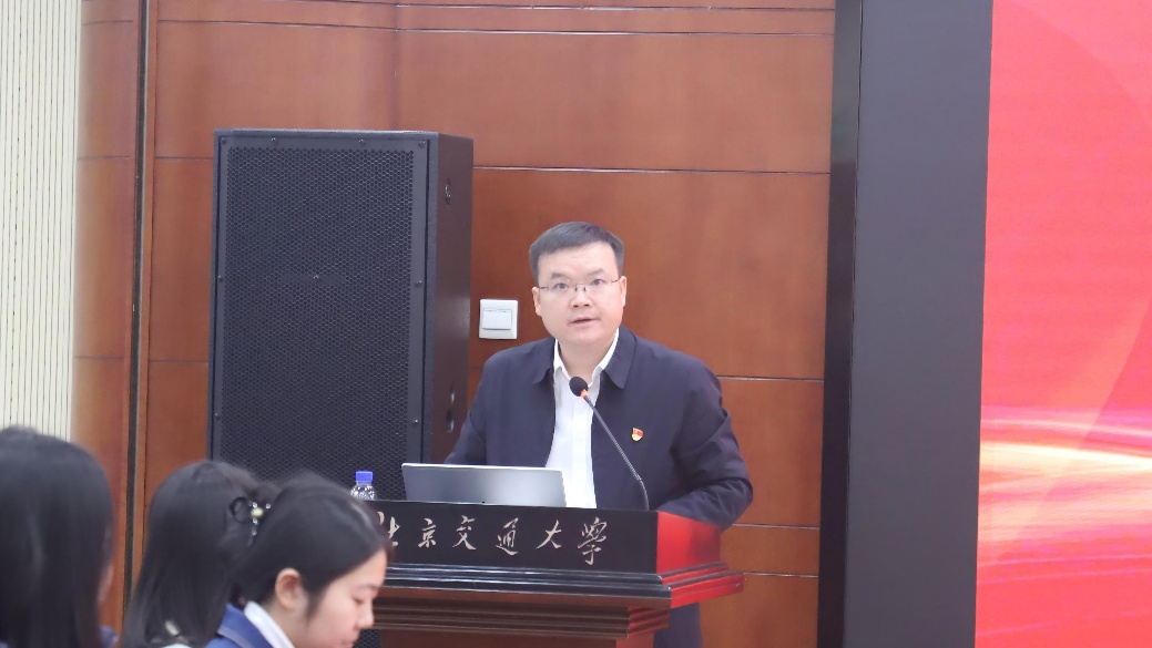 向宏军对参与此次联学共建活动的四校师生表示热烈欢迎,他回顾了四校同源的深厚情谊和四所交大共同的精神追求,简要介绍了北京交大环境学院建院以来的突破性成就,并指出百卅校庆的时代意义以及“两山”理念的实践要求。他指出,青年党员要传承交通大学的精神血脉,以此次活动为起点,在“理论共学”中坚定绿色信仰,在“交流研讨”中激发创新智慧,在“实践联动”中锤炼过硬本领,成为未来生态文明建设的生力军和主力军,在生态文明建设的赛道上勇立潮头。
