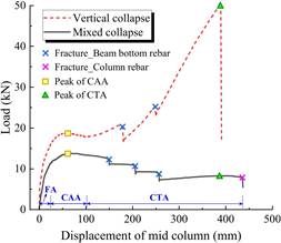 新型加载及约束装置 水平-竖向混合倒塌试件破坏模式