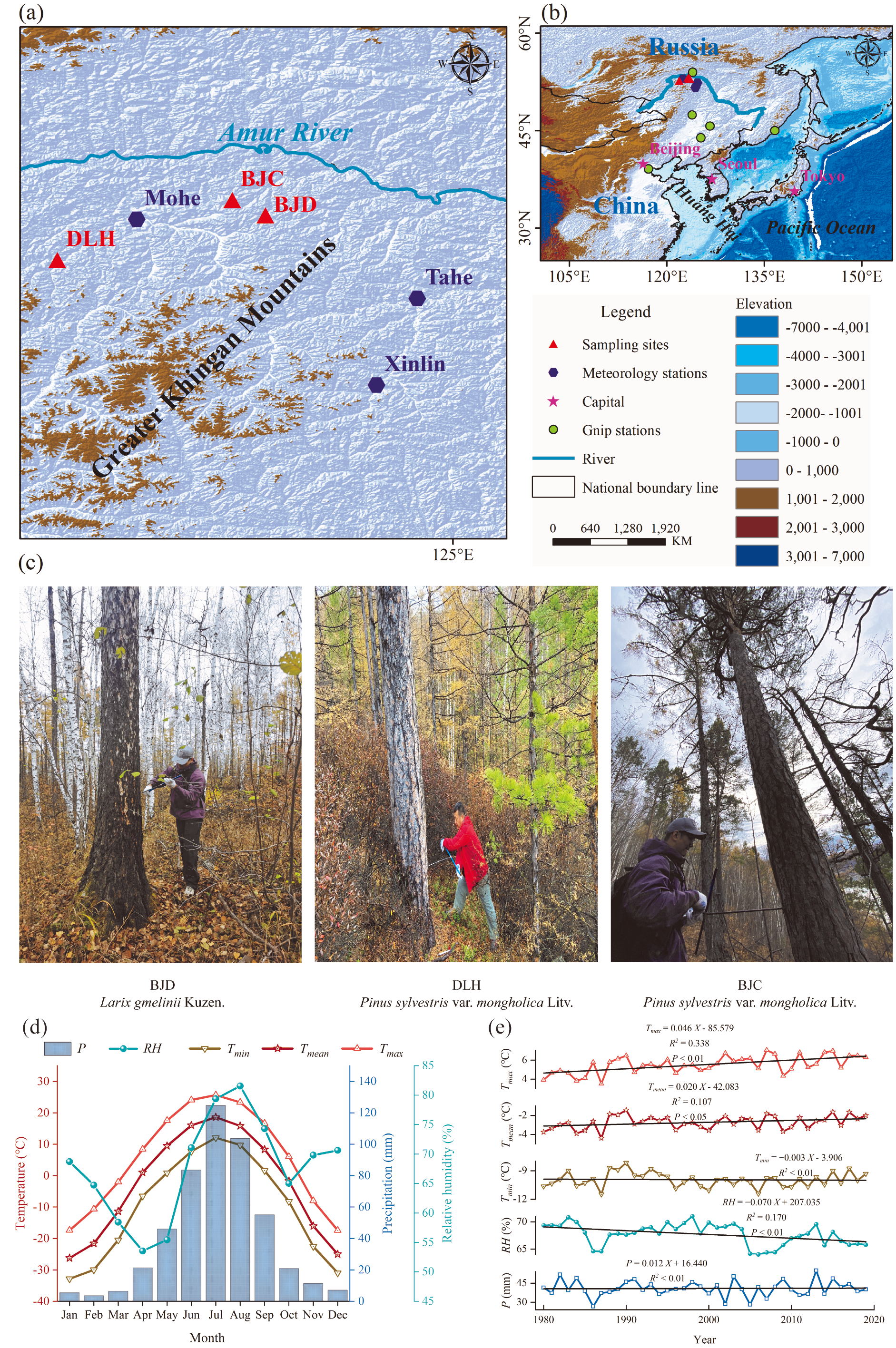 近日,西安交通大学人居环境与建筑工程学院、全球环境变化研究院李强教授研究团队联合中国科学院地球环境研究所和韩国忠北国立大学的研究人员,基于中国最北部漠河地区多年冻土带的树轮氧同位素(δ18Oc)代用记录(图1),结合模拟的降水氧同位素(δ18Op)数据,深入探讨了长期以来学术界争论的问题——气温与降水量究竟谁是影响降水氧同位素变化的主导因子?(图2)
