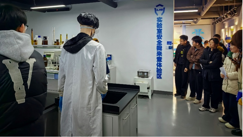参观最后,同学们进入实验室安全检查体验区,分组对照检查清单,从个人防护用品佩戴、化学试剂分类存放到电源管理、废物收集等方面,逐一查找安全隐患,用实践检验参观所学。